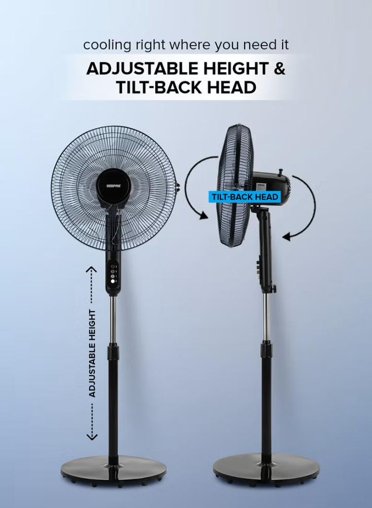 • محرك نحاسي 100% بقدرة 55 واط وسرعة دوران 1300 دورة/دقيقة لتدفق هواء قوي وفعال.